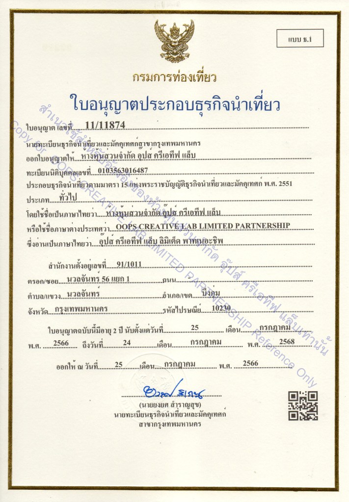 1.OOPS CREATIVE LAB Tourism Business License